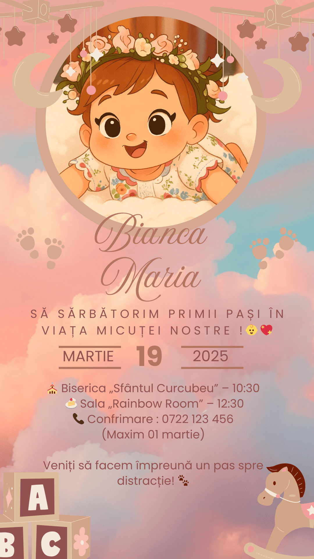 💌 Personalizare completăde la nume, locație, dată și oră, până la fotografii 📸 și mesaje text, fiecare detaliu este adaptat exact după cerințele tale. Tu decizi tonul invitației: elegant, romantic, amuzant sau modern.